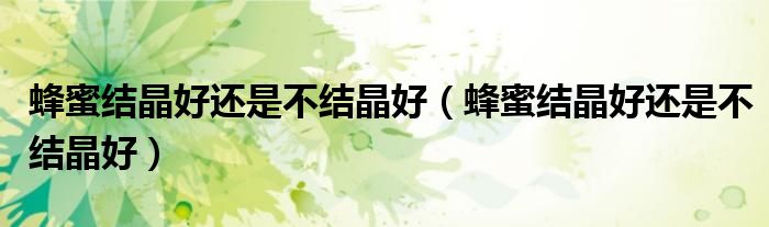 大家好,知識小編來為大家解答以上的問題。蜂蜜結晶好還是不結晶好,蜂蜜結晶好還是不結晶好很多人還不知道,現(xiàn)在讓我們一起來看看吧!
