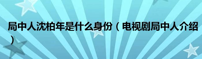 大家好,伊人來為大家解答以上問題。局中人沈柏年是什么身份,電視劇局中人介紹很多人還不知道,現(xiàn)在讓我們一起來看看吧!