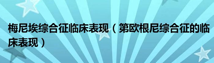 大家好,知識(shí)小編來(lái)為大家解答以上的問(wèn)題。梅尼埃綜合征臨床表現(xiàn),第歐根尼綜合征的臨床表現(xiàn)很多人還不知道,現(xiàn)在讓我們一起來(lái)看看吧!