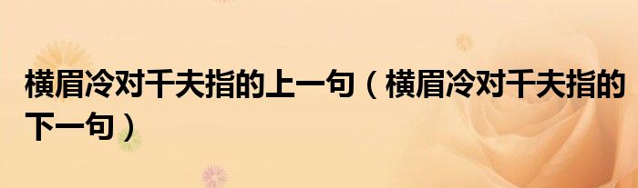 大家好,小育來為大家講解下。橫眉冷對(duì)千夫指的上一句,橫眉冷對(duì)千夫指的下一句很多人還不知道,現(xiàn)在讓我們一起來看看吧!