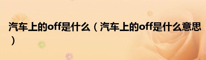 大家好,小育來(lái)為大家講解下。汽車(chē)上的off是什么,汽車(chē)上的off是什么意思很多人還不知道,現(xiàn)在讓我們一起來(lái)看看吧!