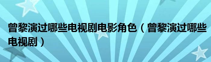 大家好,小育來為大家講解下。曾黎演過哪些電視劇電影角色,曾黎演過哪些電視劇很多人還不知道,現(xiàn)在讓我們一起來看看吧!