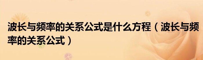 大家好,小育來(lái)為大家講解下。波長(zhǎng)與頻率的關(guān)系公式是什么方程,波長(zhǎng)與頻率的關(guān)系公式很多人還不知道,現(xiàn)在讓我們一起來(lái)看看吧!