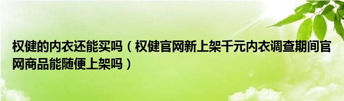 大家好,小育來為大家講解下。權(quán)健的內(nèi)衣還能買嗎,權(quán)健官網(wǎng)新上架千元內(nèi)衣調(diào)查期間官網(wǎng)商品能隨便上架嗎很多人還不知道,現(xiàn)在讓我們一起來看看吧!
