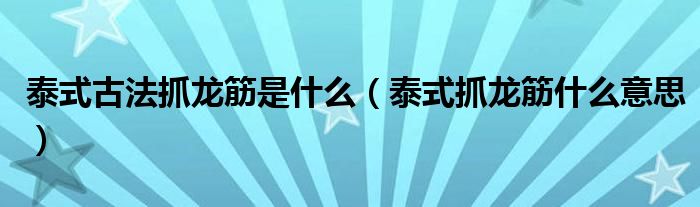 大家好,小育來為大家講解下。泰式古法抓龍筋是什么,泰式抓龍筋什么意思很多人還不知道,現(xiàn)在讓我們一起來看看吧!