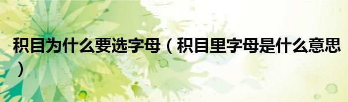 大家好,小育來為大家講解下。積目為什么要選字母,積目里字母是什么意思很多人還不知道,現(xiàn)在讓我們一起來看看吧!