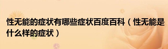 大家好,知識(shí)小編來(lái)為大家解答以上的問(wèn)題。性無(wú)能的癥狀有哪些癥狀百度百科,性無(wú)能是什么樣的癥狀很多人還不知道,現(xiàn)在讓我們一起來(lái)看看吧!