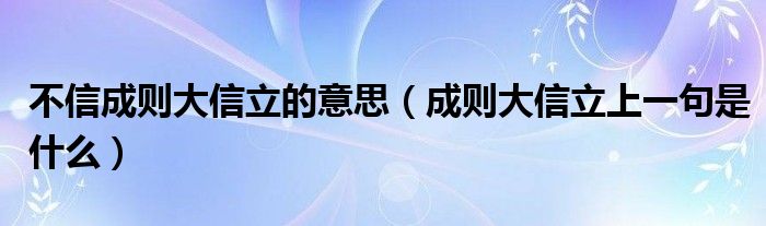 大家好,小育來(lái)為大家講解下。不信成則大信立的意思,成則大信立上一句是什么很多人還不知道,現(xiàn)在讓我們一起來(lái)看看吧!