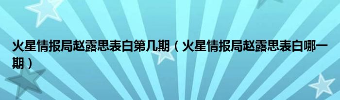 大家好,小育來為大家講解下?;鹦乔閳缶众w露思表白第幾期,火星情報局趙露思表白哪一期很多人還不知道,現(xiàn)在讓我們一起來看看吧!