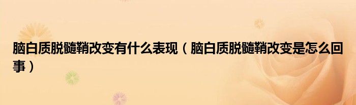 大家好,知識小編來為大家解答以上的問題。腦白質脫髓鞘改變有什么表現,腦白質脫髓鞘改變是怎么回事很多人還不知道,現在讓我們一起來看看吧!