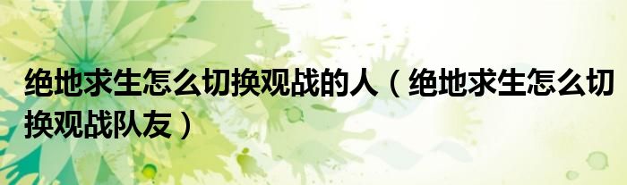 大家好,小育來為大家講解下。絕地求生怎么切換觀戰(zhàn)的人,絕地求生怎么切換觀戰(zhàn)隊(duì)友很多人還不知道,現(xiàn)在讓我們一起來看看吧!