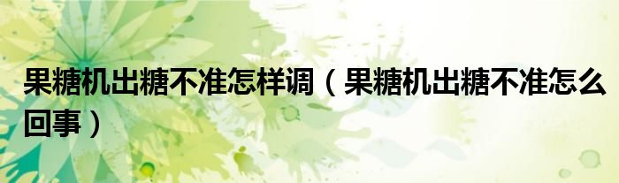 大家好,小育來為大家講解下。果糖機(jī)出糖不準(zhǔn)怎樣調(diào),果糖機(jī)出糖不準(zhǔn)怎么回事很多人還不知道,現(xiàn)在讓我們一起來看看吧!