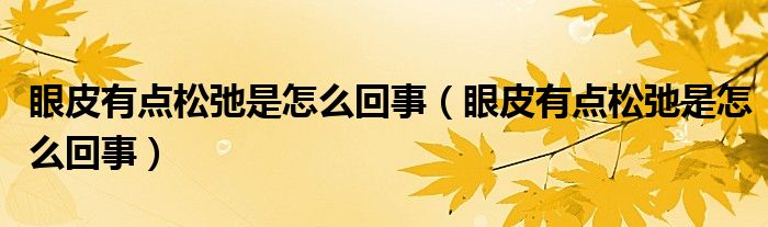 大家好,知識小編來為大家解答以上的問題。眼皮有點松弛是怎么回事,眼皮有點松弛是怎么回事很多人還不知道,現(xiàn)在讓我們一起來看看吧!