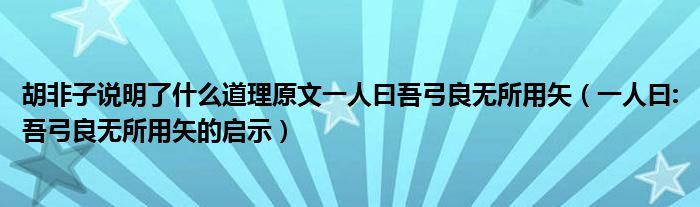 大家好,伊人來為大家解答以上問題。胡非子說明了什么道理原文一人曰吾弓良無所用矢,一人曰:吾弓良無所用矢的啟示很多人還不知道,現(xiàn)在讓我們一起來看看吧!