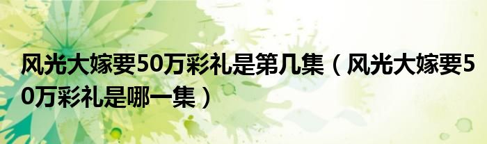 大家好,小育來為大家講解下。風(fēng)光大嫁要50萬彩禮是第幾集,風(fēng)光大嫁要50萬彩禮是哪一集很多人還不知道,現(xiàn)在讓我們一起來看看吧!