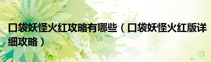 大家好,伊人來(lái)為大家解答以上問(wèn)題??诖只鸺t攻略有哪些,口袋妖怪火紅版詳細(xì)攻略很多人還不知道,現(xiàn)在讓我們一起來(lái)看看吧!