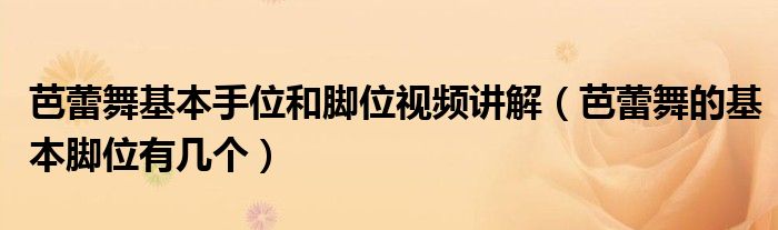 摘要大家好,小育來為大家講解下。芭蕾舞基本手位和腳位視頻講解,芭蕾舞的基本腳位有幾個(gè)很多人還不知道,現(xiàn)在讓我們一起來看看吧!1、芭蕾舞