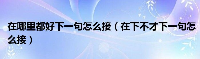 大家好,小育來為大家講解下。在哪里都好下一句怎么接,在下不才下一句怎么接很多人還不知道,現(xiàn)在讓我們一起來看看吧!