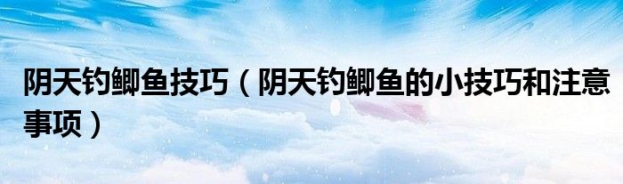 摘要大家好,伊人來為大家解答以上問題。陰天釣鯽魚技巧,陰天釣鯽魚的小技巧和注意事項很多人還不知道,現(xiàn)在讓我們一起來看看吧!1、陰天給人