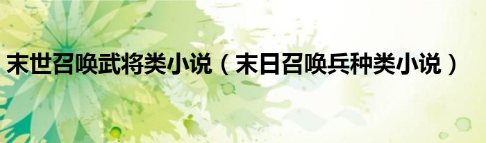 大家好,小育來(lái)為大家講解下。末世召喚武將類(lèi)小說(shuō),末日召喚兵種類(lèi)小說(shuō)很多人還不知道,現(xiàn)在讓我們一起來(lái)看看吧!
