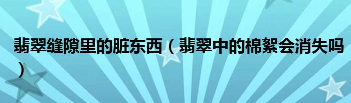 大家好,小育來為大家講解下。翡翠縫隙里的臟東西,翡翠中的棉絮會消失嗎很多人還不知道,現(xiàn)在讓我們一起來看看吧!