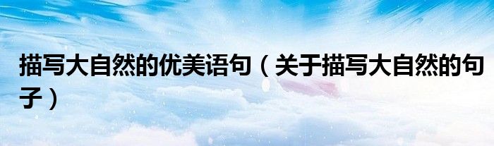 大家好,伊人來為大家解答以上問題。描寫大自然的優(yōu)美語(yǔ)句,關(guān)于描寫大自然的句子很多人還不知道,現(xiàn)在讓我們一起來看看吧!