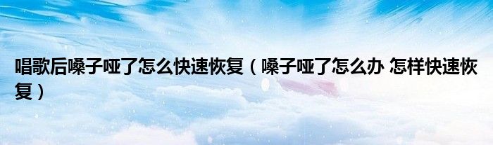 大家好,知識小編來為大家解答以上的問題。唱歌后嗓子啞了怎么快速恢復(fù),嗓子啞了怎么辦 怎樣快速恢復(fù)很多人還不知道,現(xiàn)在讓我們一起來看看吧!