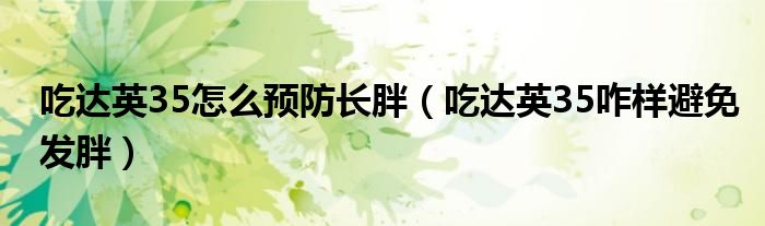 大家好,知識(shí)小編來為大家解答以上的問題。吃達(dá)英35怎么預(yù)防長(zhǎng)胖,吃達(dá)英35咋樣避免發(fā)胖很多人還不知道,現(xiàn)在讓我們一起來看看吧!