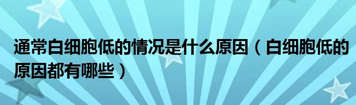 大家好,知識小編來為大家解答以上的問題。通常白細(xì)胞低的情況是什么原因,白細(xì)胞低的原因都有哪些很多人還不知道,現(xiàn)在讓我們一起來看看吧!
