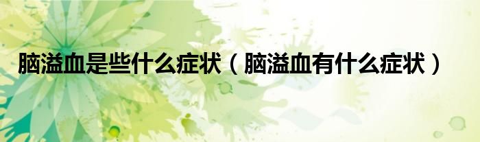 大家好,知識(shí)小編來為大家解答以上的問題。腦溢血是些什么癥狀,腦溢血有什么癥狀很多人還不知道,現(xiàn)在讓我們一起來看看吧!