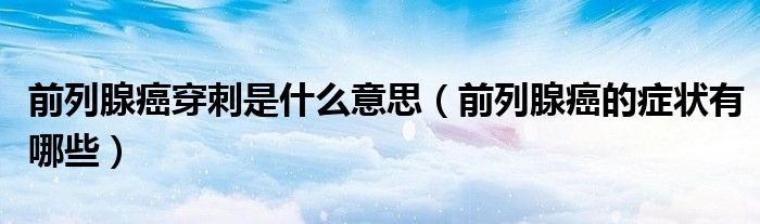 摘要大家好,知識(shí)小編來為大家解答以上的問題。前列腺癌穿刺是什么意思,前列腺癌的癥狀有哪些很多人還不知道,現(xiàn)在讓我們一起來看看吧!前列腺