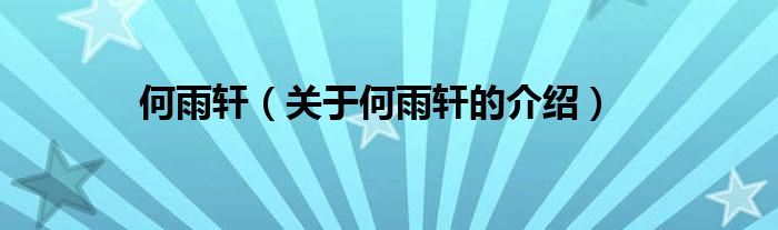 大家好,小新來為大家解答以上的問題。何雨軒,關(guān)于何雨軒的介紹很多人還不知道,現(xiàn)在讓我們一起來看看吧!