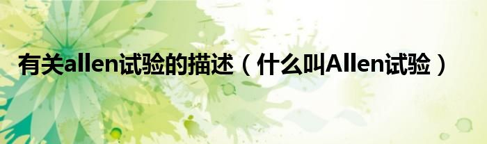 大家好,知識(shí)小編來為大家解答以上的問題。有關(guān)allen試驗(yàn)的描述,什么叫Allen試驗(yàn)很多人還不知道,現(xiàn)在讓我們一起來看看吧!