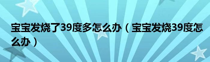 摘要大家好,知識(shí)小編來(lái)為大家解答以上的問(wèn)題。寶寶發(fā)燒了39度多怎么辦,寶寶發(fā)燒39度怎么辦很多人還不知道,現(xiàn)在讓我們一起來(lái)看看吧!如果寶寶