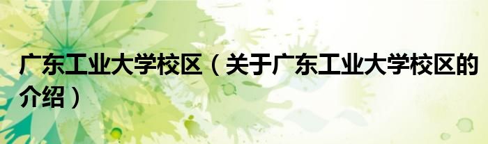 大家好,小新來為大家解答以上的問題。廣東工業(yè)大學(xué)校區(qū),關(guān)于廣東工業(yè)大學(xué)校區(qū)的介紹很多人還不知道,現(xiàn)在讓我們一起來看看吧!