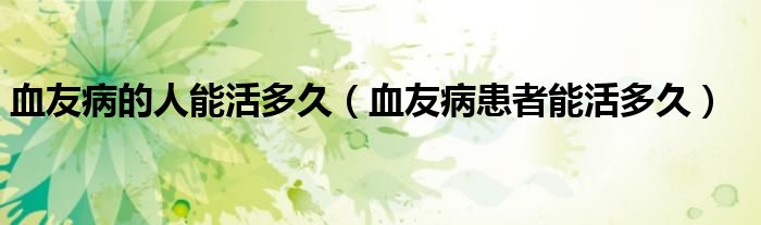 摘要大家好,知識(shí)小編來(lái)為大家解答以上的問(wèn)題。血友病的人能活多久,血友病患者能活多久很多人還不知道,現(xiàn)在讓我們一起來(lái)看看吧!血友病患者的