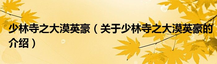 摘要大家好,小新來為大家解答以上的問題。少林寺之大漠英豪,關(guān)于少林寺之大漠英豪的介紹很多人還不知道,現(xiàn)在讓我們一起來看看吧!1、《少林