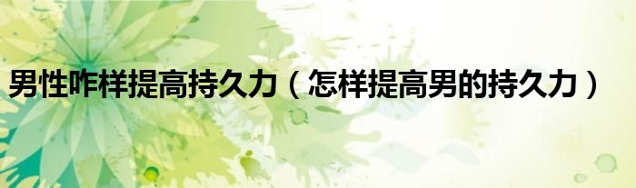 大家好,知識小編來為大家解答以上的問題。男性咋樣提高持久力,怎樣提高男的持久力很多人還不知道,現(xiàn)在讓我們一起來看看吧!