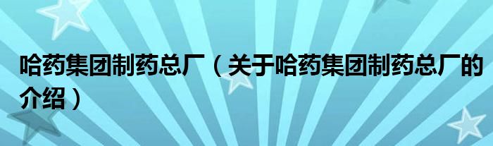 大家好,小新來為大家解答以上的問題。哈藥集團制藥總廠,關(guān)于哈藥集團制藥總廠的介紹很多人還不知道,現(xiàn)在讓我們一起來看看吧!