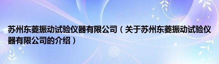 大家好,小新來為大家解答以上的問題。蘇州東菱振動試驗儀器有限公司,關(guān)于蘇州東菱振動試驗儀器有限公司的介紹很多人還不知道,現(xiàn)在讓我們一起來看看吧!