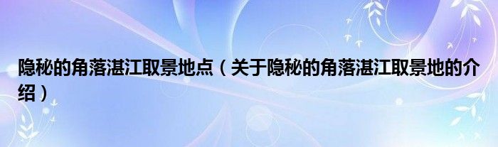 摘要大家好,伊人來(lái)為大家解答以上問(wèn)題。隱秘的角落湛江取景地點(diǎn),關(guān)于隱秘的角落湛江取景地的介紹很多人還不知道,現(xiàn)在讓我們一起來(lái)看看吧!1