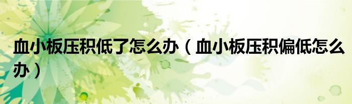 大家好,知識小編來為大家解答以上的問題。血小板壓積低了怎么辦,血小板壓積偏低怎么辦很多人還不知道,現(xiàn)在讓我們一起來看看吧!