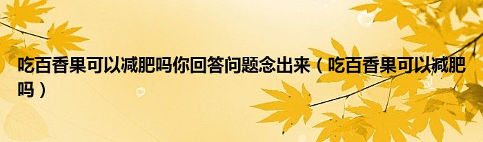 大家好,知識(shí)小編來(lái)為大家解答以上的問(wèn)題。吃百香果可以減肥嗎你回答問(wèn)題念出來(lái),吃百香果可以減肥嗎很多人還不知道,現(xiàn)在讓我們一起來(lái)看看吧!