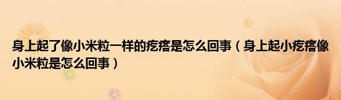 摘要大家好,知識(shí)小編來(lái)為大家解答以上的問(wèn)題。身上起了像小米粒一樣的疙瘩是怎么回事,身上起小疙瘩像小米粒是怎么回事很多人還不知道,現(xiàn)在讓
