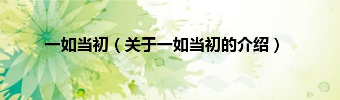 大家好,小新來為大家解答以上的問題。一如當(dāng)初,關(guān)于一如當(dāng)初的介紹很多人還不知道,現(xiàn)在讓我們一起來看看吧!