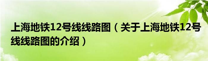 大家好,小新來為大家解答以上的問題。上海地鐵12號(hào)線線路圖,關(guān)于上海地鐵12號(hào)線線路圖的介紹很多人還不知道,現(xiàn)在讓我們一起來看看吧!
