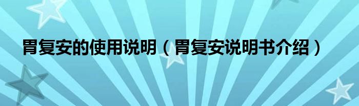 大家好,知識(shí)小編來(lái)為大家解答以上的問(wèn)題。胃復(fù)安的使用說(shuō)明,胃復(fù)安說(shuō)明書(shū)介紹很多人還不知道,現(xiàn)在讓我們一起來(lái)看看吧!
