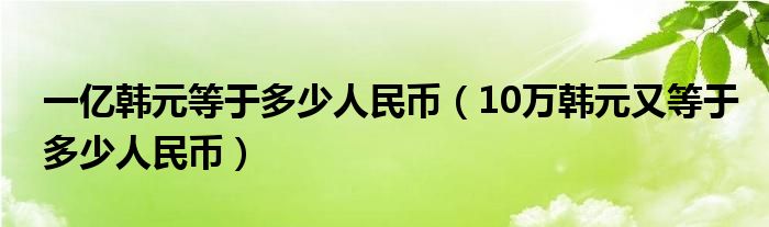 大家好,伊人來為大家解答以上問題。一億韓元等于多少人民幣,10萬韓元又等于多少人民幣很多人還不知道,現(xiàn)在讓我們一起來看看吧!