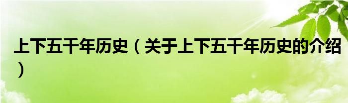 大家好,小新來為大家解答以上的問題。上下五千年歷史,關(guān)于上下五千年歷史的介紹很多人還不知道,現(xiàn)在讓我們一起來看看吧!