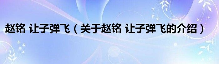 大家好,小新來為大家解答以上的問題。趙銘 讓子彈飛,關于趙銘 讓子彈飛的介紹很多人還不知道,現(xiàn)在讓我們一起來看看吧!